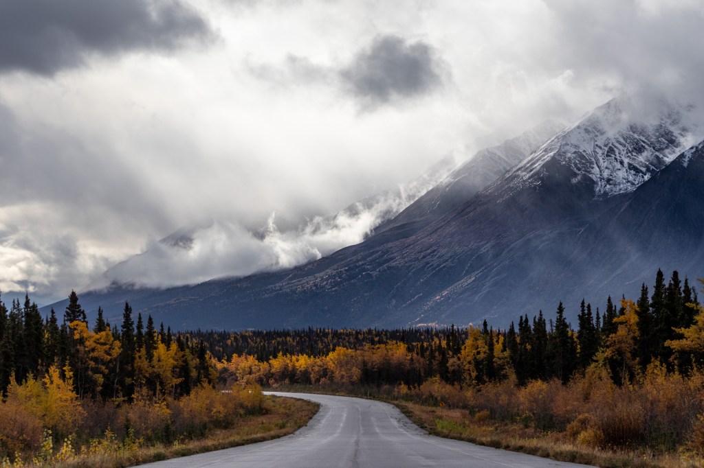 The autumn colours along Highway 1 on the way to Kluane National Park in the Yukon, October 2023.